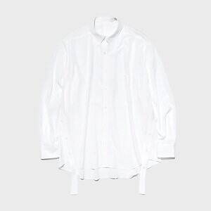 ロングスリーブのシャツは、ボタンの開閉によってシルエットを大胆に変えられる、ウジョーのシャツがベース。サルバムとのコラボレーションでは、サイドとバックにボタンをあしらるとともに、サイドの前立を長めに設定するなど、インラインとは異なる表情に仕上げた。カラーは、ホワイトとブラックの2色展開だ。