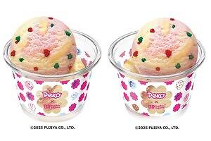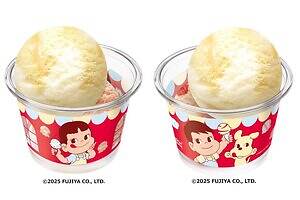 2025年で75周年を迎えるペコちゃんと、サーティワン アイスクリームのコラボレーションが実現。目玉となるのは、幅広い世代に愛され続けているロングセラー「ミルキー」をイメージした2種類のフレーバーだ。