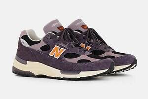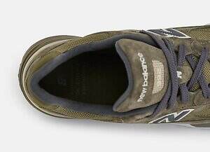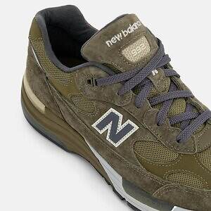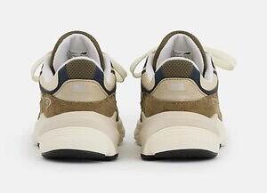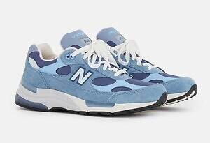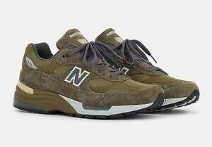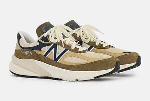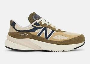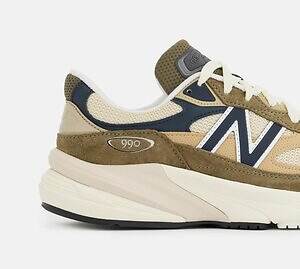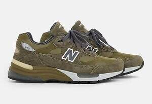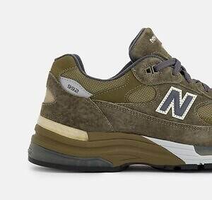 ランニングシューズ「990v6」と「992」は、落ち着いたトーンにライトカラーをちりばめたスタイリッシュな仕上がり。「990v6」は、ホワイトメッシュをベースにネイビーのアクセントを効かせ、ブラウンやタンカラーのスエードと合皮を組み合わせることで、スポーティーなフォルムに品のある雰囲気をまとわせた。