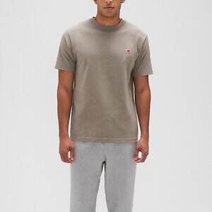 スウェットやTシャツにもライトベージュやグレージュ、ブラウンなどの秋冬らしいニュートラルカラーがラインナップ。ベーシックカラーに胸元の赤いロゴエンブレムが映える、洗練された仕上がりになっている。