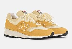 また、目を引く鮮やかなアプリコット色の「997」スニーカーは、ニューイングランドの紅葉に着想を得たカラーリング。柔らかな毛羽立ちのあるヘアリースエードが、温かみのあるムードを演出している。