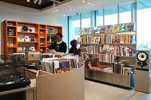 注目は、ビームスの店舗では初となる中古レコード売場。ヒップホップ、R&B、ディスコ、 ハウスミュージック、ジャズ、和物などの6ジャンルからセレクトした、初心者でも手に取りやすいレコードを展開する。オープン時には、約500枚が揃う。加えて、プレイヤーやスピーカーなど様々な音響機材もラインナップ。その場で視聴して選ぶこともできる。
