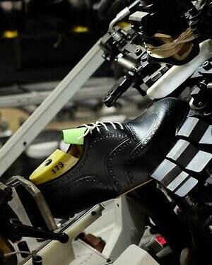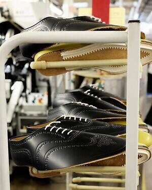 製造にあたっては最先端のレザーエングレービング技術と高周波技術を駆使しており、熟練の職人たちが「チェットウィンド」に特徴的なウィングチップデザインを手作業でレザーアッパーに刻印している。