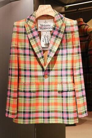 ヴィヴィアン・ウエストウッド 青山店のオープンを記念して発売される限定アイテムも見逃せない。アーカイブから採用したオレンジ×グリーン×ブルーの特別なタータンチェックを配した、ユニセックスの「レリオ」ジャケットや「ジョージ」トラウザー、サマーキルトのウィメンズスカートなどが揃う。