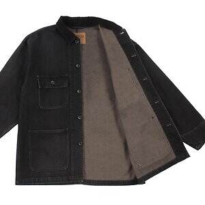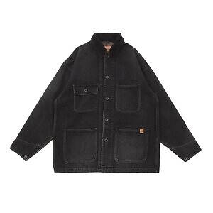 コーヒー豆の捨て殻を使った染色剤で染め上げた、日本製デニムのジャケットも要チェック。ブラックデニムの色を落とした後に特殊な後染め加工を施し、独特な深みのある風合いを表現した。3本ステッチやコーデュロイを配した衿など、ヴィンテージのジャケットから着想したディテールが目を引く一方で、シルエットはリラクシーでモダンな印象に仕上げている。