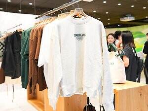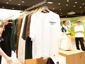 「STARBUCKS STAND by BEAMS」のロゴをフィーチャーしたファッションアイテムも充実。USAコットン天竺を採用したドライタッチのTシャツや、アメリカンなムードのヘビーウェイトスウェットをはじめ、キャンバスロゴトートバッグやエプロンなども揃う。