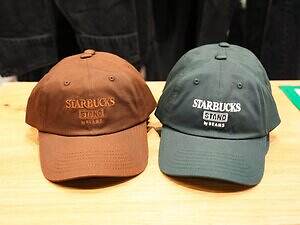 カジュアルシックな6パネルベースボールキャップは、フロントにロゴを刺繍。コーヒーを思わせるブラウンと、スターバックスを象徴するグリーンカラーで展開される。