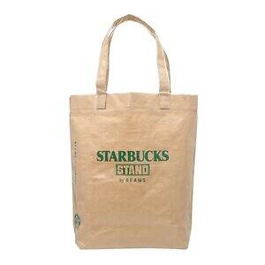 紙袋のような風合いのPVCトートバッグも登場。フロント中央には“STARBUCKS STAND by BEAMS”のロゴを、背面には”スターバックス”のサイレンロゴをプリントした。A4サイズの書類やノートパソコンを収納できる大きめのサイズ感がうれしいポイント。長さ調整が可能なハンドルも備えた、実用性に優れたバッグに仕上げた。