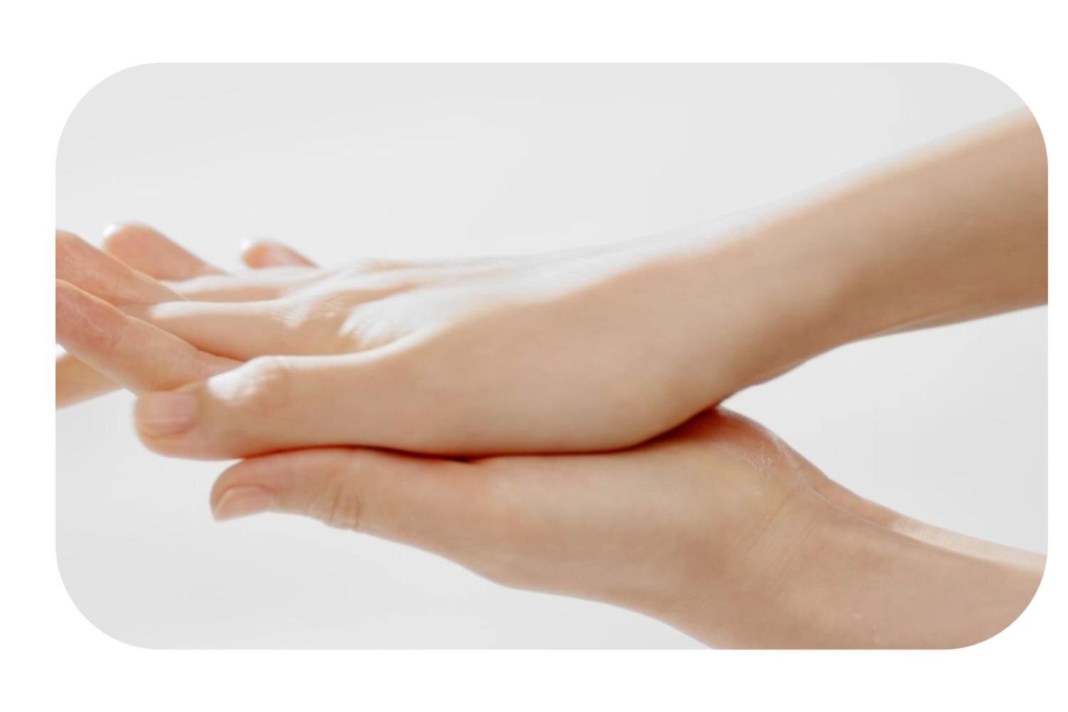 適量を出し、手のひらや指の間に、白く残らなくなるまでなじませる。少量ずつ出るポンプチューブのため、使用量も調整しやすい。