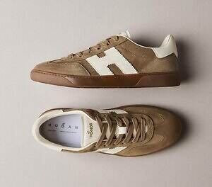 レトロな雰囲気とモダンなシルエットが調和した「ホーガン クール」は、ギザギザのカッティングを施した”H”ロゴとシュータンが目を引くデザイン。品のあるブラウンのスエードアッパーが、秋冬のコーディネートを格上げしてくれる。