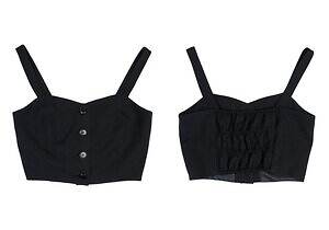 フロントのボタンやコンパクトなシルエットがポイントのビスチェも。様々なトップスにあわせやすく、同シリーズのジャケットやスカートなどとあわせれば、簡単に3ピーススタイルが完成する。