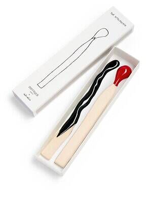 また、飛び散るワックスを表現したキャンドルスタンドや、マッチ棒をモチーフにしたブックスタンドなど、ユーモアあふれるデザインのインテリア雑貨もラインナップする。