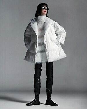 「ヌヴォーラ」は、1着で可憐な存在感を放つダウンコート。起毛感のあるレース素材を全体に纏い、華やかな表情を描き出す。また、裾にかけてゆるやかに広がるAラインが女性らしいシルエットを演出してくれるのも嬉しい。