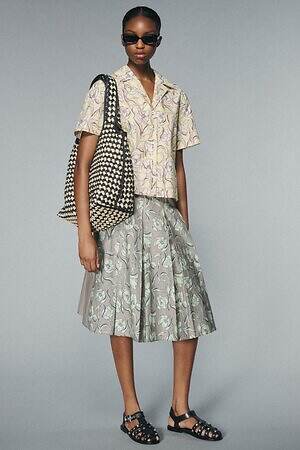 毎シーズン登場するフラワーモチーフは、華やかなチューリップ柄を採用。軽やかなコットン地の開襟シャツをはじめ、ふんわりとしたオーガンジー素材のノースリーブトップスやミディ丈スカート、ドレスなど幅広いバリエーションが揃う。