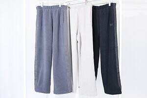 カーディガンとセットで着用できる「フリースワイドパンツ」もチェックして。ワイドストレートのパンツをベースにサイドテープと“パピヨン”ロゴを施し、ニードルズで不動の人気を誇るトラックパンツのような佇まいに仕上げている。