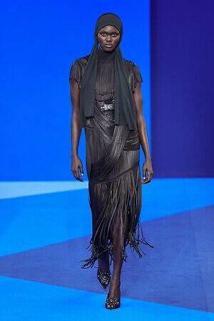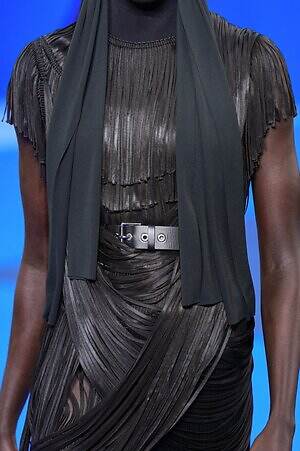 今季はすべてのモデルがヘアバンドを纏っていたのも印象的。華やかさを引き算し、よりモダンで、実用的なムードを演出した。