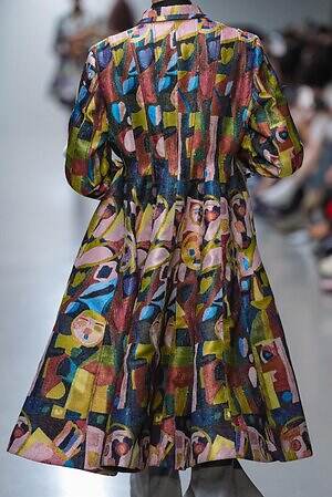 会場で配られていたコレクションノートによると、今季のクリエイションは、デザイナーの森永邦彦と、障害がある作家の才能をアートやデザインを通じて社会に広げる活動を行う「ヘラルボニー(HERALBONY)」との出会いからスタートしたという。呼吸をするように自然に、圧倒的な力と美しさを伴った作品を生み出すアーティストたち。彼らの作品に触れた時、「これは単なるアートではなく、命の結晶そのもの」だと感じ、衝撃を受けたと森永は語る。