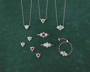 アベリ(AbHerï)のクリスマスジュエリーから、繊細なカラーストーンとダイヤモンドを主役に据えた、“花”がモチーフのリングが登場。カラーストーンは、ダイヤモンド、ルビー、アクアマリン、デマントイドガーネットの4種類を展開する。