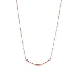 ティファニー(Tiffany & Co.)から、「T スマイル」モチーフを採用した「ティファニー T」シリーズの日本限定ペンダントが登場。18Kローズゴールドでアーチを描く「T スマイル」状のチャームの両サイドに、鮮やかなピンクサファイヤが煌めく。