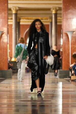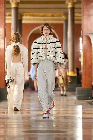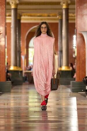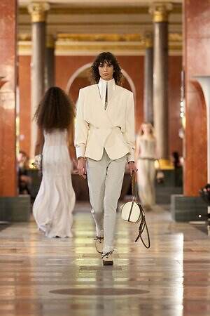 「アール・ドゥ・ヴィーヴル(暮らしの美学)」をテーマに掲げる今季は、かつてフランス王妃アンヌ・ドートリッシュの夏の住居であったルーヴル美術館をコレクション発表の舞台に選んだ。会場にはインテリア家具や美術作品を配置し、プライベート空間風のセットを構成。本来家の中で着用するワードローブをラグジュアリーに再解釈し、親密さとプライベートな領域における限りない自由を表現した。