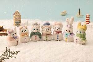 中でも注目は、ダッフィー&フレンズの姿をモチーフにした、もこもこ素材の雪だるまのぬいぐるみチャーム。ころんとしたフォルムのキャラクターたちが、ニット帽やマフラーなどのあたたかな装いで登場する。お気に入りのバッグに付ければ、いつでもキュートな姿のダッフィーたちに癒しをもらうことができる。
