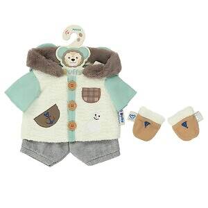 ぬいぐるみコスチュームには、冬らしいコーディネートがラインナップ。ダッフィーのふわふわパーカー、オル・メルのニット帽、リーナ・ベルのマフラーとリボンなど、思わず抱きしめたくなるようなほっこりアイテムが揃う。
