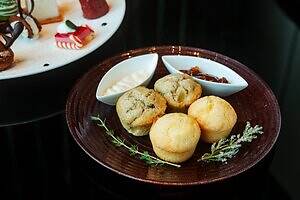 フォアグラタルト、モルタデッラボンボン、ローズマリーベニエ、カニレムラード