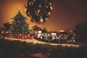 16ピースの円形レールをテーブルやクリスマスツリーの周囲にレイアウトすれば、いっそう華やかなディスプレイに。別売りの「レゴ パワード アップ キット(Powered Up キット)」を組み合わせると、機関車をモーターで走らせることもできる。