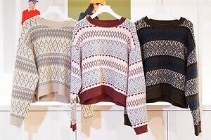秋冬スタイルの定番“フェアアイル柄”をあしらったクルーネックセーターもラインナップ。カラーによって表情が異なり、キュートなピンク、柔らかなベージュ、メンズライクな深いグリーンの3色を用意。ショート丈でどんなボトムスにも合わせやすく、スカートでガーリーに、デニムパンツでカジュアルに、スラックスで綺麗めにと、多彩なスタイリングが楽しめる。