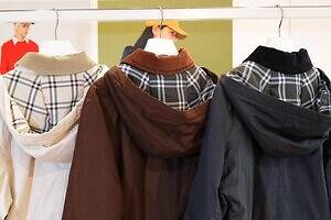 「パフテックショートジャケット」は、英国ムードを漂わせる1着。取り外し可能なフードと裏地に、英国を象徴するチェック柄をあしらった。全体は少しスポーティな中綿素材“パフテック”でまとめつつ、襟と袖裏に温かみのあるコーデュロイを配し、都会的なアクセントを添えている。