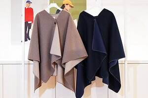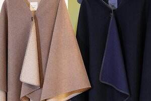 「ポンチョ」は、羽織りとしてはもちろん、ブランケットとしても活躍するアイテム。柔らかくて肌触りもよく、秋冬のレイヤードだけでなく、部屋でのリラックスタイムやオフィス、車内など、幅広いシーンで体を暖かく包み込んでくれる。縁取りのステッチと表裏で異なるカラーが、さりげないアクセントをもたらしている。