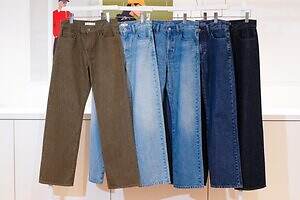 ボトムスでは、ワイドすぎない絶妙な太さが持ち味の人気「ストレートジーンズ」が今年も登場。今回は、深みの異なる3色のブルーとネイビーに加え、少し無骨な表情の新色グリーンもラインナップ。履き込むほどに、ヴィンテージのような風合いが楽しめそう。
