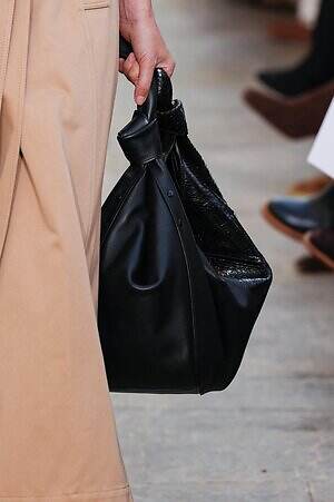 ショーの締めくくりは、降伏の考えを示す「THE HANGED MAN(吊るされた男)」のルックでフィニッシュ。ブラックのスエードとカシミアのメリノニットを使用したドレスに、巻き付けるようにして編み込みレザーのディテールを配し、縄に縛られた姿を表現した。