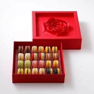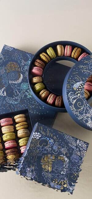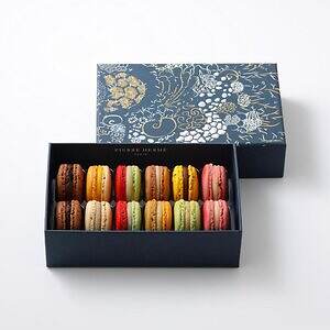 目玉となるのは、思いがけない素材同士を組み合わせたマカロンが揃うギフトボックス「シニャチュール ノエル」。マロンとショウガの風味が広がる「ルフレ」、マンゴーとハチミツのトロピカルで甘い「オレア」、白トリュフとローストヘーゼルナッツを合わせた「トリュフブランシュエノワゼット」などを詰め合わせた。