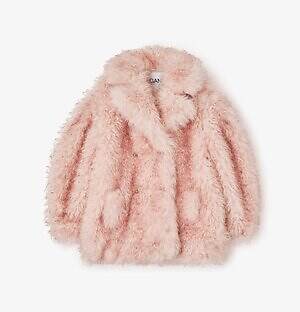 また、ダブルブレストのフェイクファーコートも要チェック。ふんわりと広がる毛足が、エレガントな存在感を放っている。冬の主役アイテムとしておすすめの一着だ。