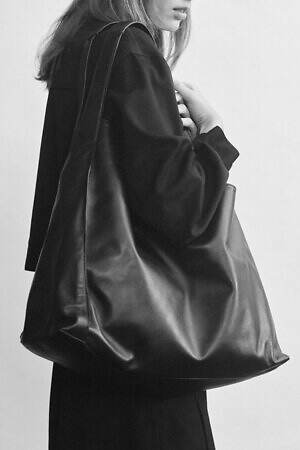 「ラウンド(ROUND)」は、幾何学的な丸いラインが目を引くショルダーバッグ。物を入れて持ち上げると、レザーの表面にドレープが浮かび、陰影のある独特の表情が生まれる。S、M、Lと3つのサイズを用意しており、ライフスタイルに合わせて選べるのもうれしいポイントだ。