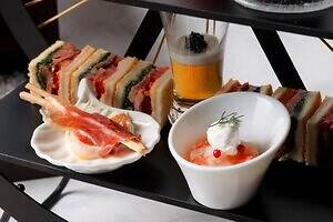 クリスマスのムードを高めてくれるセイボリーも必見。松阪牛のフィレ肉を用いたサンドウィッチから、キャビアをのせたコンソメジュレ、サーモンとホタテのタルタルソースエイグレット、生ハムグリッシーニとクリームチーズのムースまで、高級感あふれるメニューを展開する。