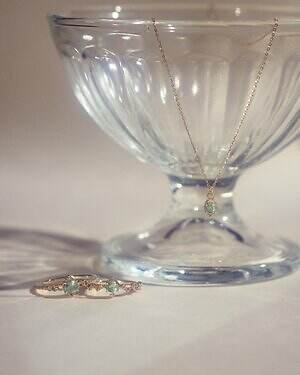 “A Promise to My Future”をテーマとしたノジェスの新作は、夜の余韻と新しい光の始まりを重ね合わせ、未来への希望や自分との約束を表現したジュエリーコレクション。アンデシンとアクアマリンをあしらったリングをはじめ、花モチーフのネックレスやピアス、幸運を象徴するチャームなど、多彩なアイテムが揃う。