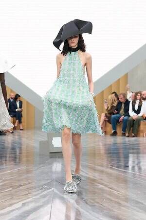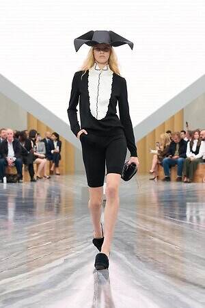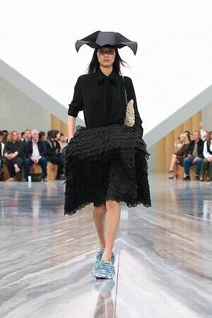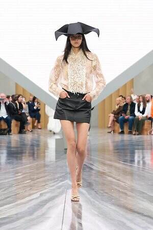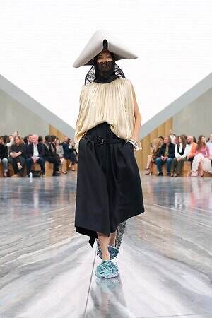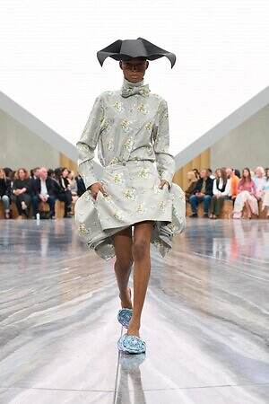 今季のキーピースとして繰り返し提案されたつば広ハットは、ヴィクトリア朝時代の航海用帽子から着想を得たもの。コレクションにダイナミックなアクセントを加えるとともに、メゾンが次のフェーズへと進む高揚感、新たな船出への期待感を高めた。