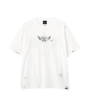 なお、同じステンシル加工を施したロングスリーブとショートスリーブのトップスも展開。ブラックとホワイトの2色をラインナップする。