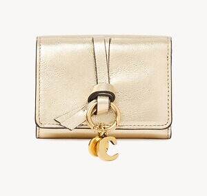 クロエのスモールレザーグッズの人気ライン「アルファベット」には、新たなカラーが登場。たとえばミニ財布は、上品なゴールドカラーに。澄んだ色彩のゴールドカラーが魅力で、アイコニックなチャームと呼応した輝きを放っている。