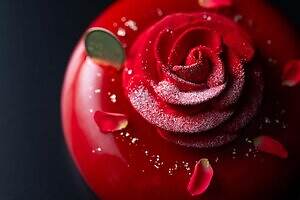 目玉となるのは、真っ赤なバラを飾った「ノエル ローズ マリーアントワネット」。マリー・アントワネットが愛したバラの花びらとフランス・ヴェルサイユの王立菜園で採れたりんごで香り付けした‟マリーアントワネットティー”を使用し、チョコレートのムースにバラ風味のラズベリージュレを閉じ込めた。