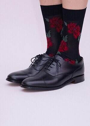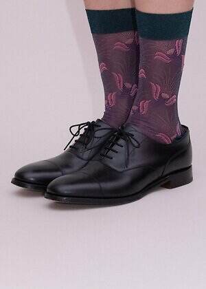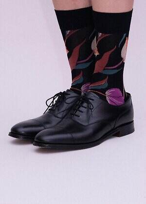 花をモチーフにしたソックスは、盛りだくさん。上品な色合いで描かれたチューリップや、力強く咲くボタンの花、ポップなタッチの花々、ふわりと舞う綿毛まで、多彩な柄を用意。モチーフごとに配色や素材を変えており、透け感のあるシースルータイプもラインナップする。