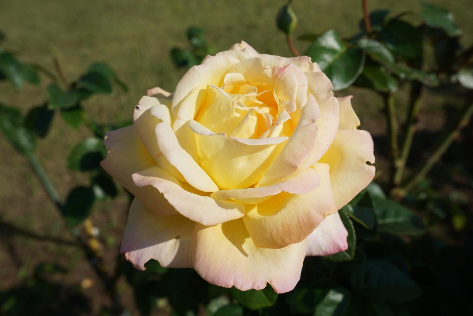 園内では、バラが品種ごとにゾーニングされており、それぞれの魅力を存分に堪能することができる。中でも注目の品種は、「ピース」という黄色のバラ。咲き進むにつれて花弁のふちが濃いピンク色から淡い色へと変化し、グラデーションが生まれる幻想的な花だ。時期をずらして訪れれば、また異なる表情を見ることができるかもしれない。