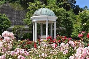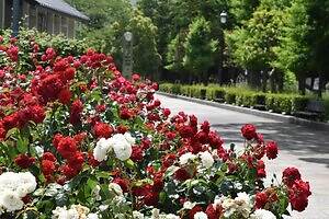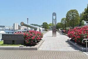 横須賀市ヴェルニー公園は、約130種類約1,300株のバラを入場料無料で楽しむことができるフランス様式の庭園。横須賀港に面しているため、広大な海を背景に咲き誇る花々を眺めることができる。