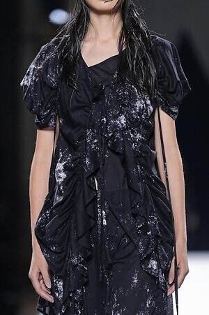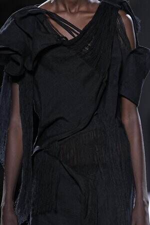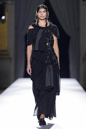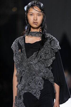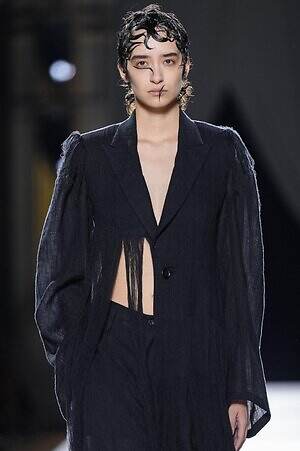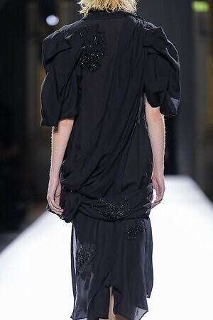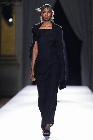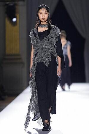 今季も、ブランドを象徴する「黒」を主役にコレクションを発表したヨウジヤマモト。全てを飲み込む闇の黒、力強さの象徴である黒、重厚な黒──黒が持つそんなイメージとは裏腹に、今季のピースには柔らかさや儚さ、穏やかな温もりが漂っているように思われる。