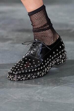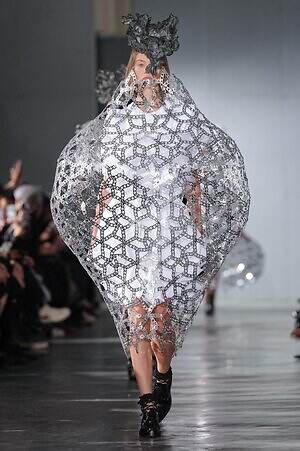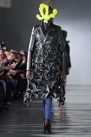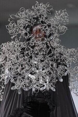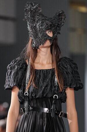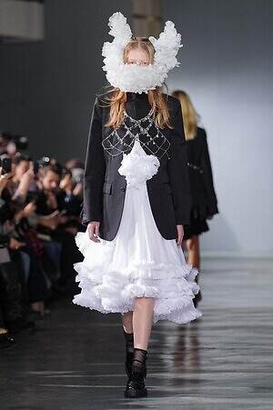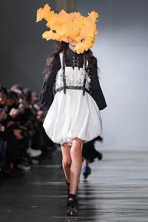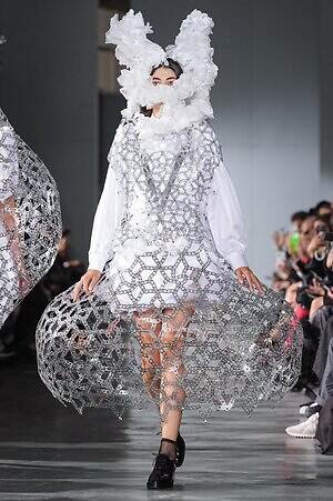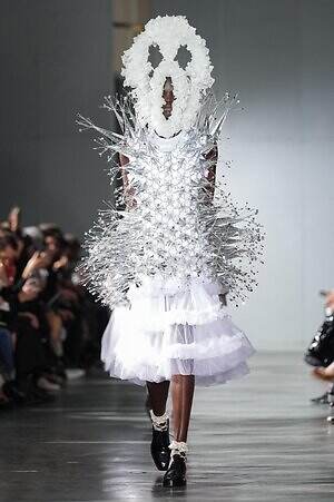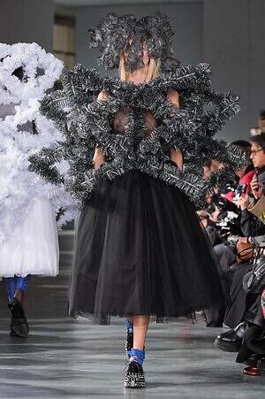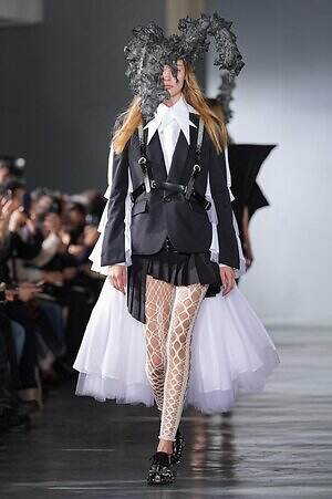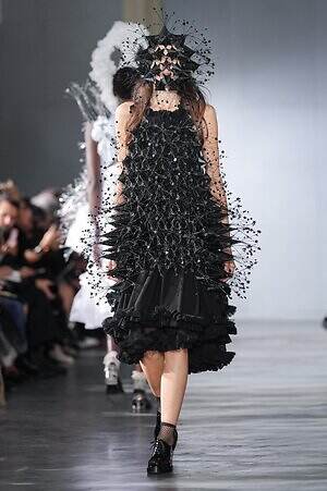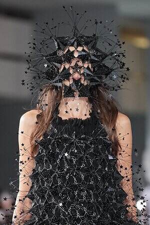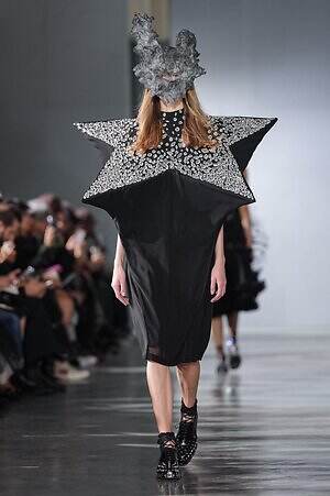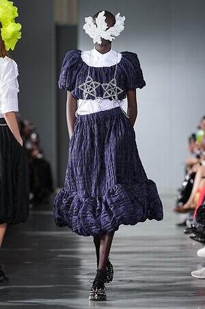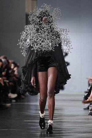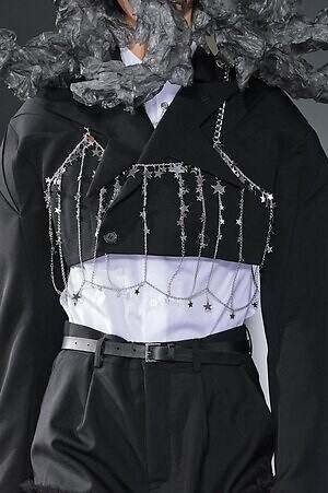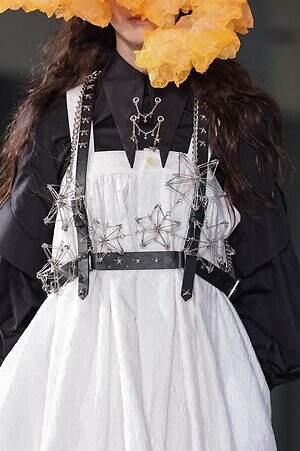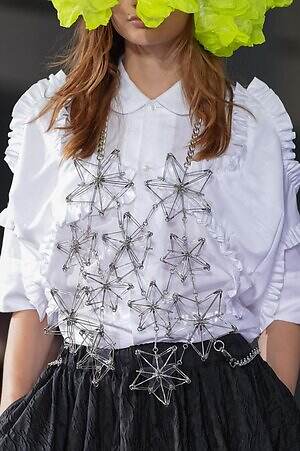 続くルックでも、円錐型の棘から流れ星のようにスターが飛び出すベストや、ビジューが煌めく星型ビスチェなど、"輝く星"をモチーフにしたピースが次々に登場。ロマンティックなフリルやチュールの上に降り注ぎ、ジュエリーのような華やかさを添えていた。