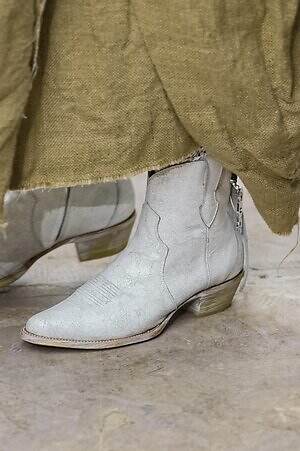 ナチュラルなトーンをきりりと引き締める、赤の色使いも印象的だ。何層にも重なったテキスタイルの裁断面から覗かせたり、衣服の裂け目からちらりと見せたり、はたまた、レースの繊細な編み目からぼんやりと透かせたり。さりげない差し込み方で、ほのかなアクセントをもたらしていた。