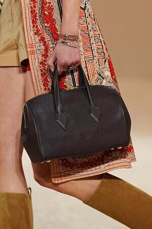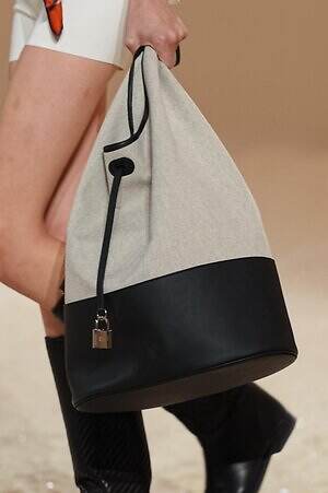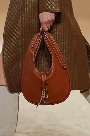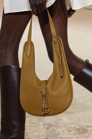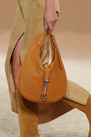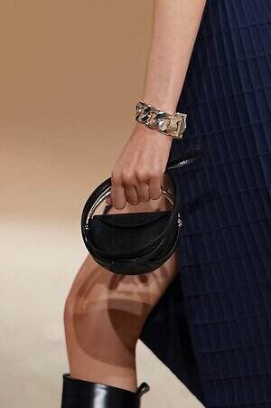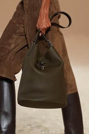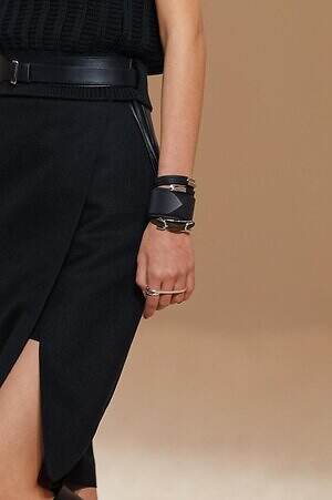 実用性と職人技が見事に融合した、エルメスならではのピースも目に留まった。コレクション全体で提案されたキルティングのコートやジャケットは、革細工の技術とブティックの針仕事という2つの伝統を感じさせるアイテム。そこへ手作業でワックスをかけたレザーやストラップ、バックル、リングなどがアクセントとして加えられ、エレガントでありながらも野生味を感じる独特のムードをもたらす。