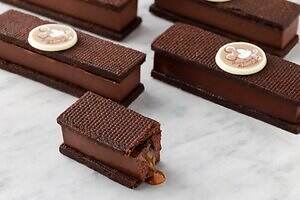 そんなオリジナルブレンドのコクと苦味にマッチするのが、キャラメルガナッシュサンド。サクッと食感のサブレで、濃厚ガナッシュとほろ苦いキャラメルクリームをたっぷりとサンドした。